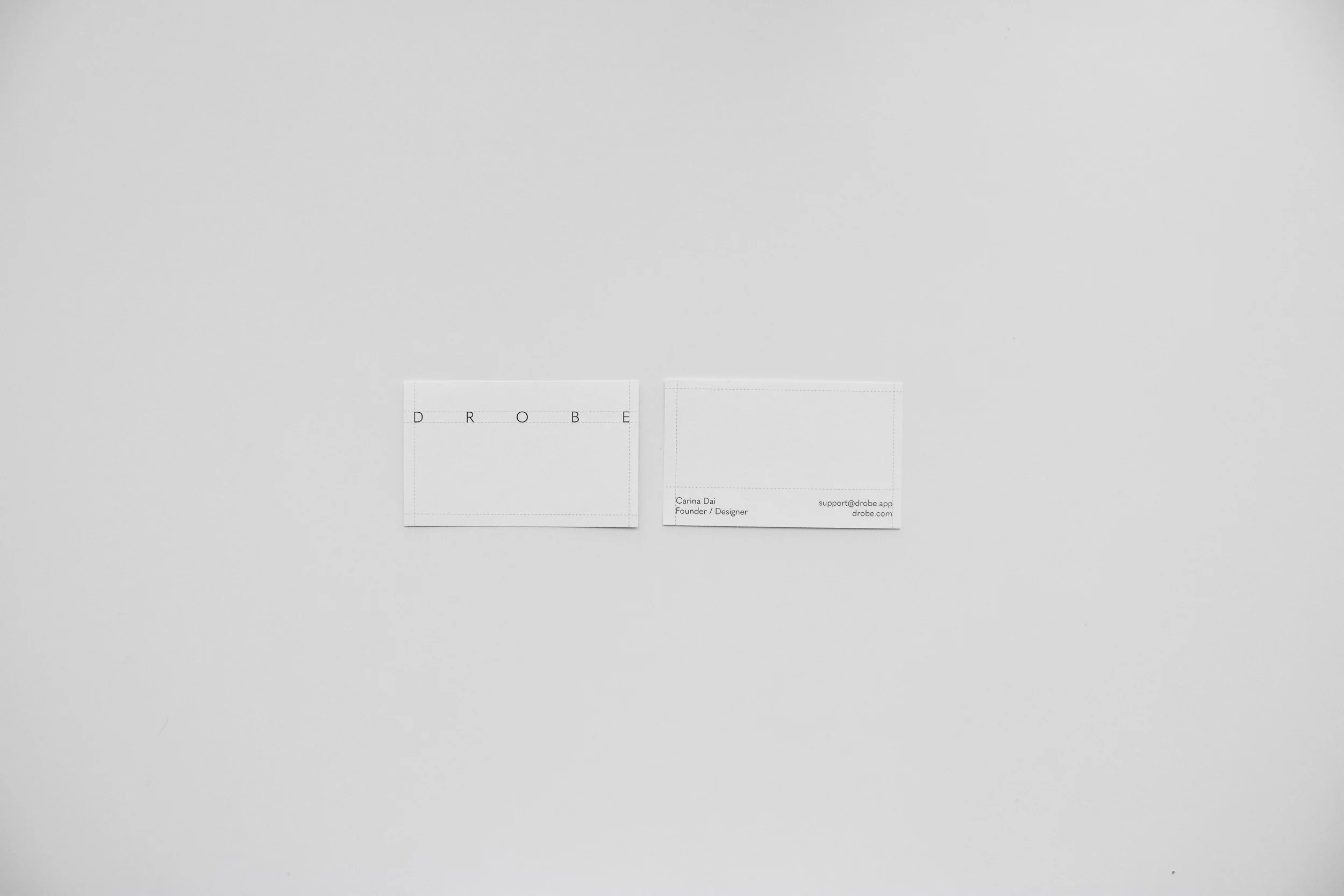 A physical brand system was also built for DROBE, including QR-coded tags, a starter booklet, and printed promotional materials.