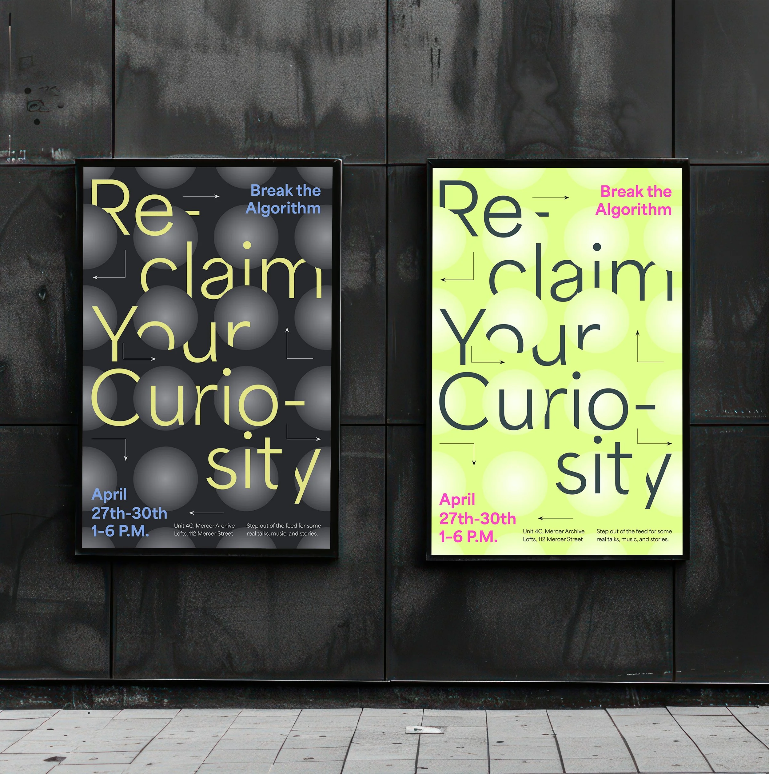 This campaign confronts the way algorithms narrow our worldview and amplify bias. Designed to reach urban, digitally-native audiences, it launches with a bold, typographic wild-posting poster.
